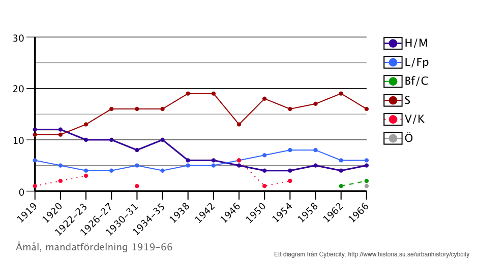 Mandatfördelning i Åmåls stadsfullmäktige 1919-1966