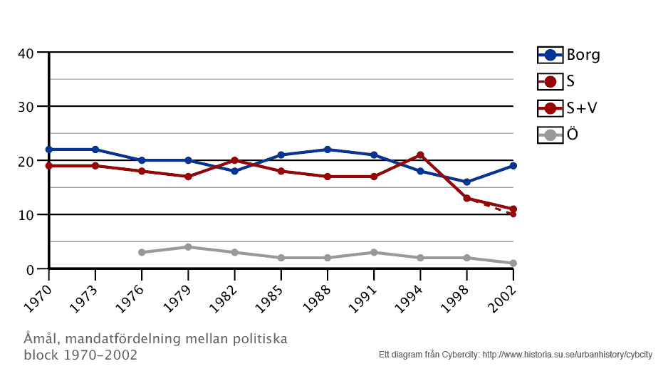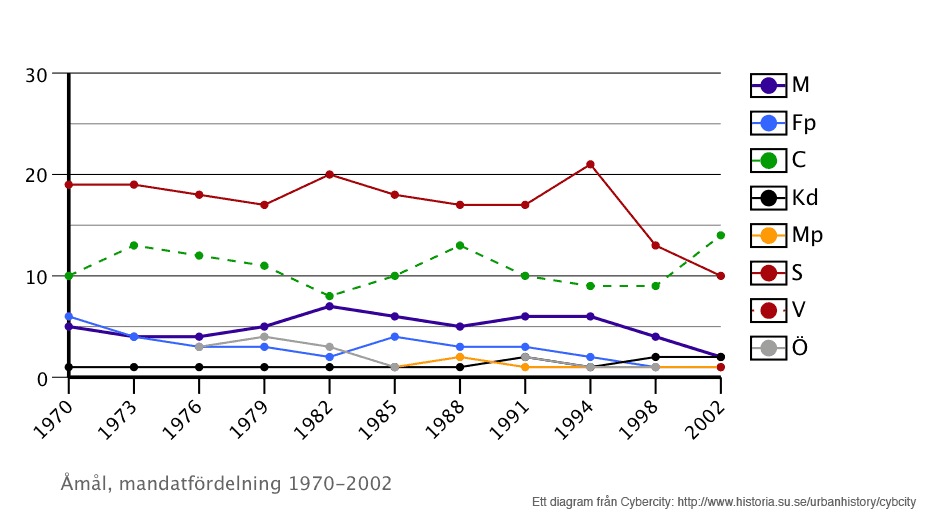 Antalet mandat i Åmåls stadsfullmäktige fördelade mellan