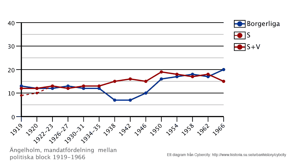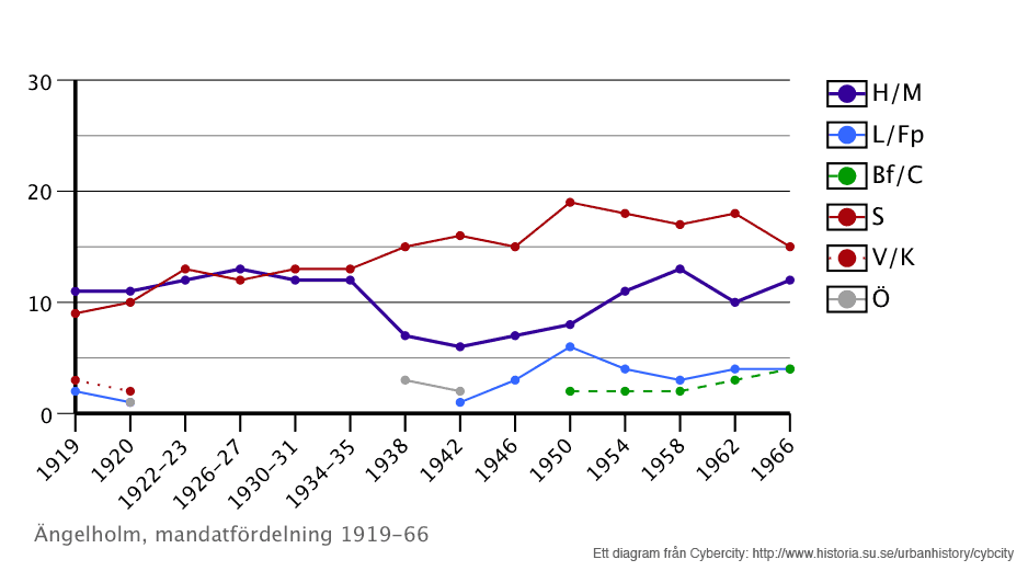 Mandatfördelning i Ängelholms stadsfullmäktige 1919-1966