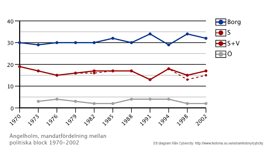 Diagram 4: Antalet mandat i Ängelholms kommunfullmäktige