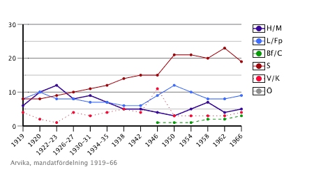 Mandatfördelning i Arvikas stadsfullmäktige 1919-1966