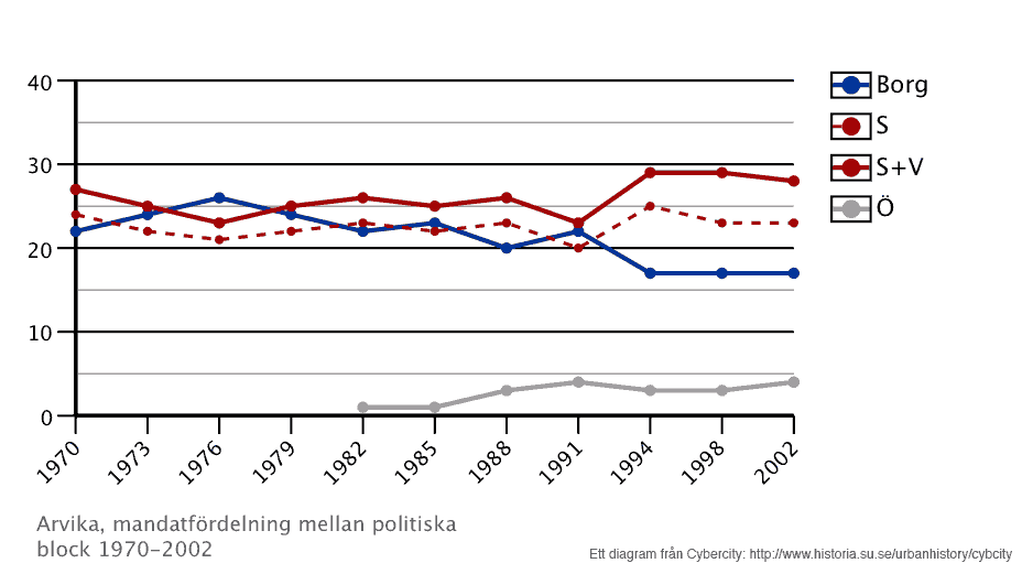 Antalet mandat i Arvikas stadsfullmäktige fördelade mellan borgerliga