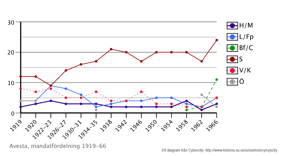 Mandatfördelning i Avestas stadsfullmäktige 1919-1966