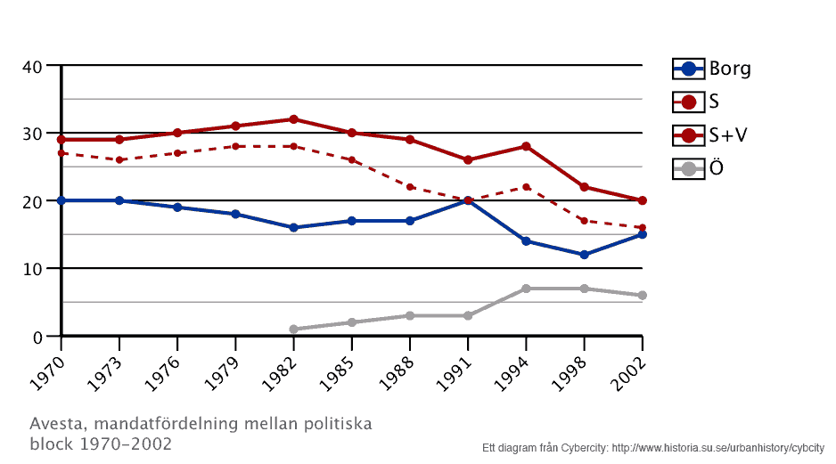 Antalet mandat i Avestas stadsfullmäktige fördelade mellan borgerliga