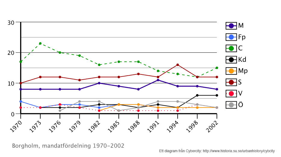 Diagram 3: Antalet mandat i Borgholms stadsfullmäktige