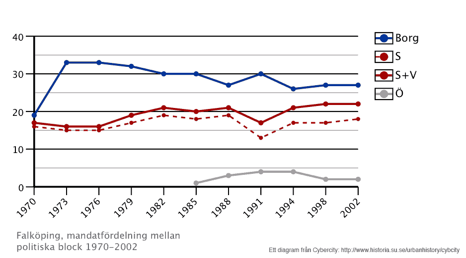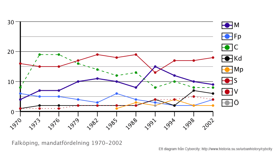 Diagram 3: Antalet mandat i Falköpings stadsfullmäktige