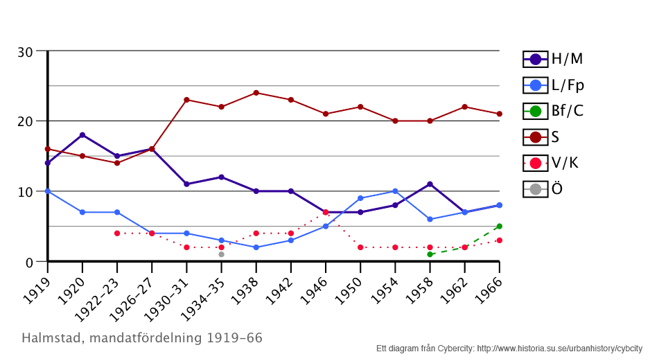 Tabell 3: Antalet mandat i Halmstads stadsfullmäktige