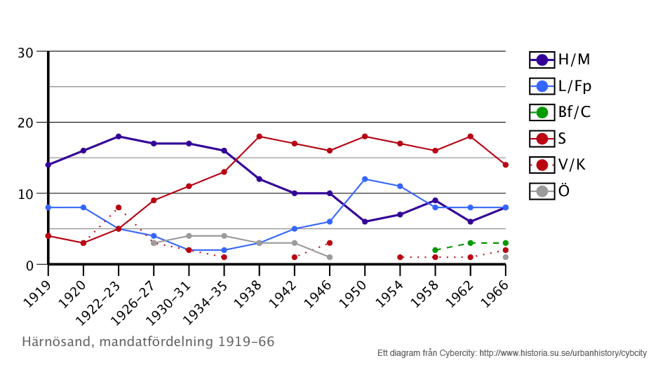 Tabell 3: Antalet mandat i Härnösands stadsfullmäktige
