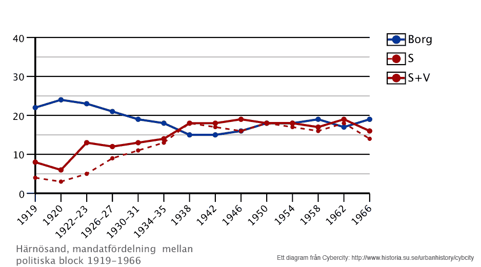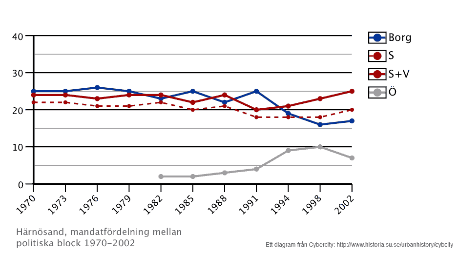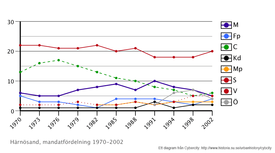 Diagram 3: Antalet mandat i Härnösands stadsfullmäktige
