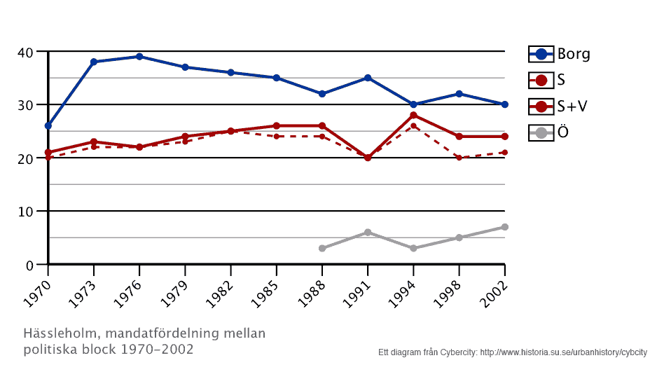 Diagram 3: Antalet mandat i Hässleholms stadsfullmäktige