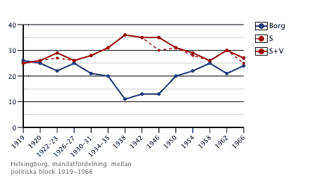 Mandatfördelning i Helsingborgs stadsfullmäktige 1919-1966