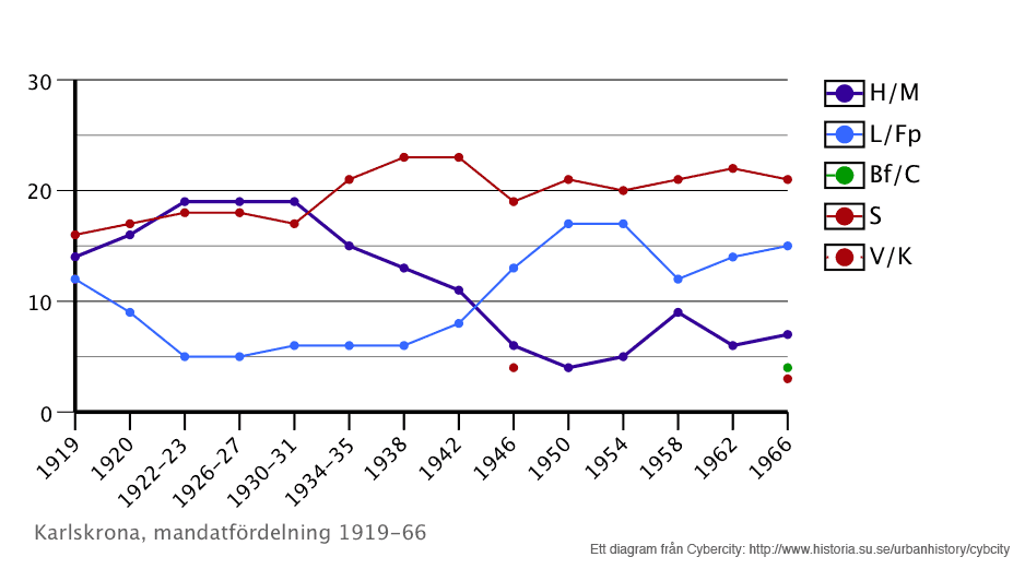Tabell 3: Antalet mandat i Karlskronas stadsfullmäktige