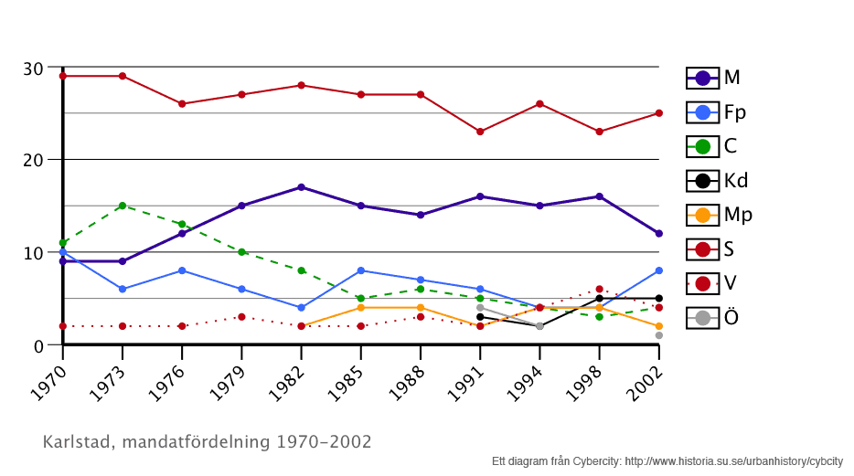 Tabell 2: Mandatfördelning i Karlstads kommunfullmäktige