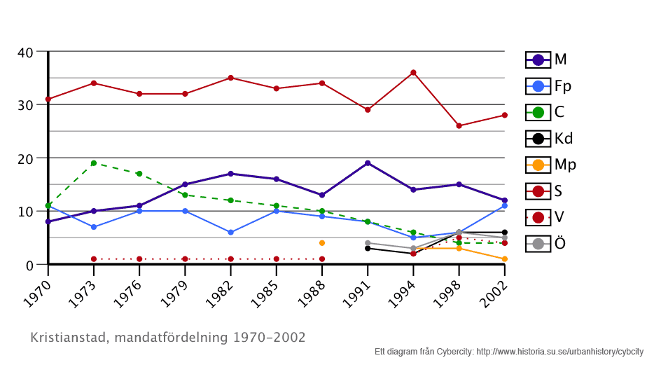 Tabell 3: Antalet mandat i Kristianstads stadsfullmäktige