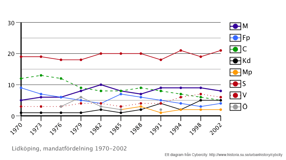 Tabell 1: Mandatfördelning i Lidköpings stadsfullmäktige