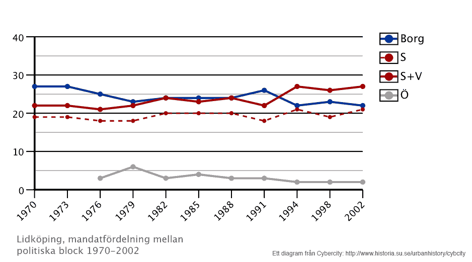 Diagram 3: Antalet mandat i Lidköpings stadsfullmäktige
