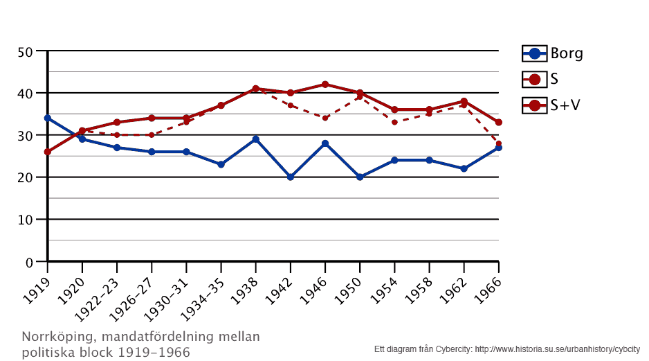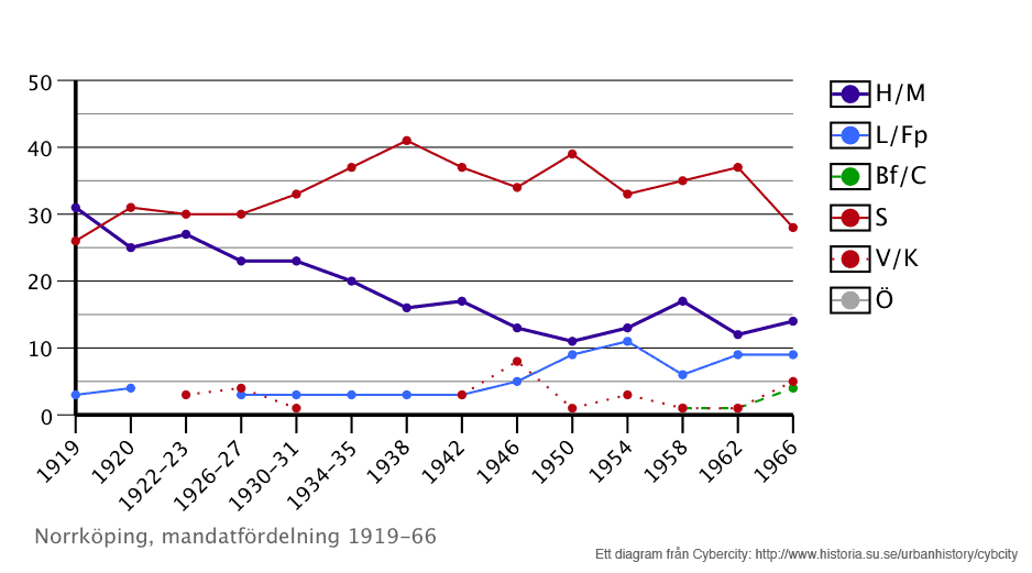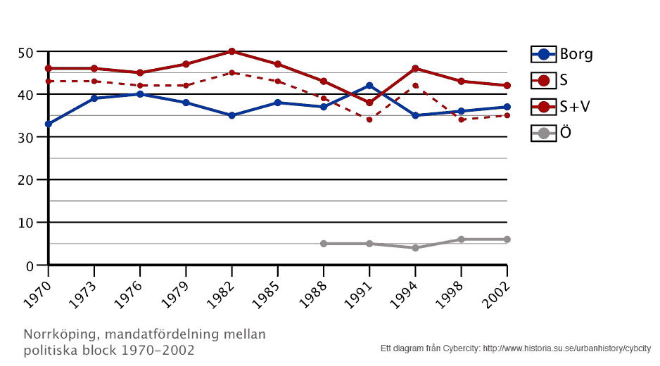 Diagram 3: Antalet mandat i Norrköpings stadsfullmäktige