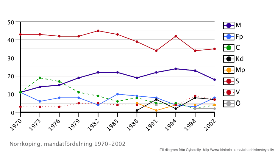 Tabell 1: Mandatfördelning i Norrköpings stadsfullmäktige