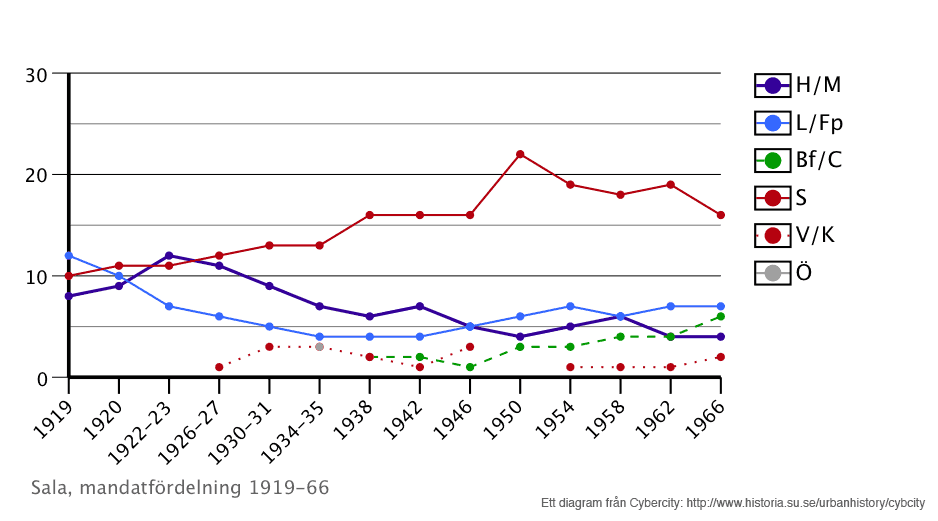Salas kommunala val i Sala 1919-1966