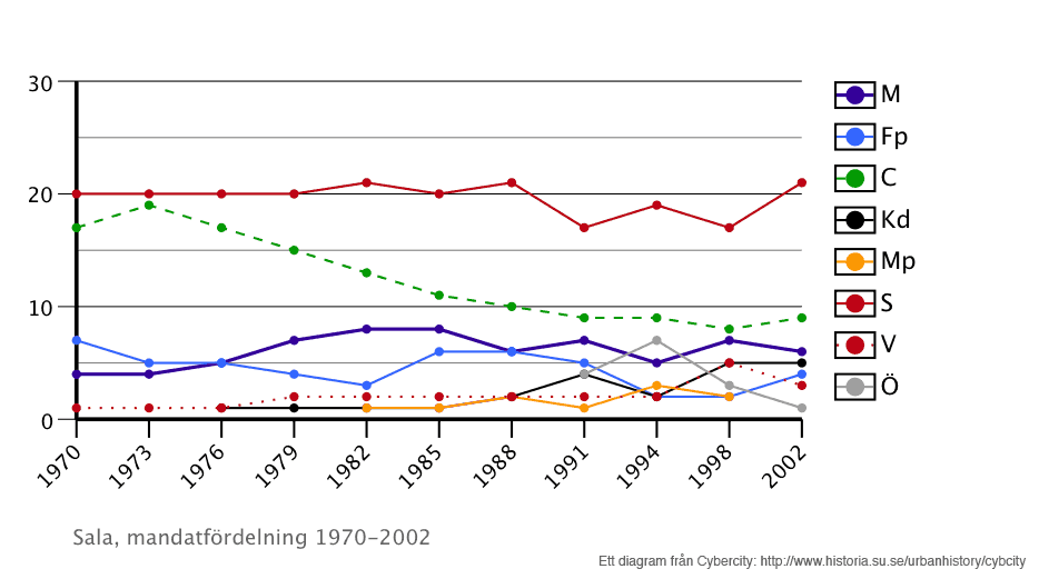 Tabell 1: Mandatfördelning i Salas stadsfullmäktige