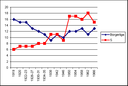 mellan borgerliga partier och socialdemokraterna 1919-1966